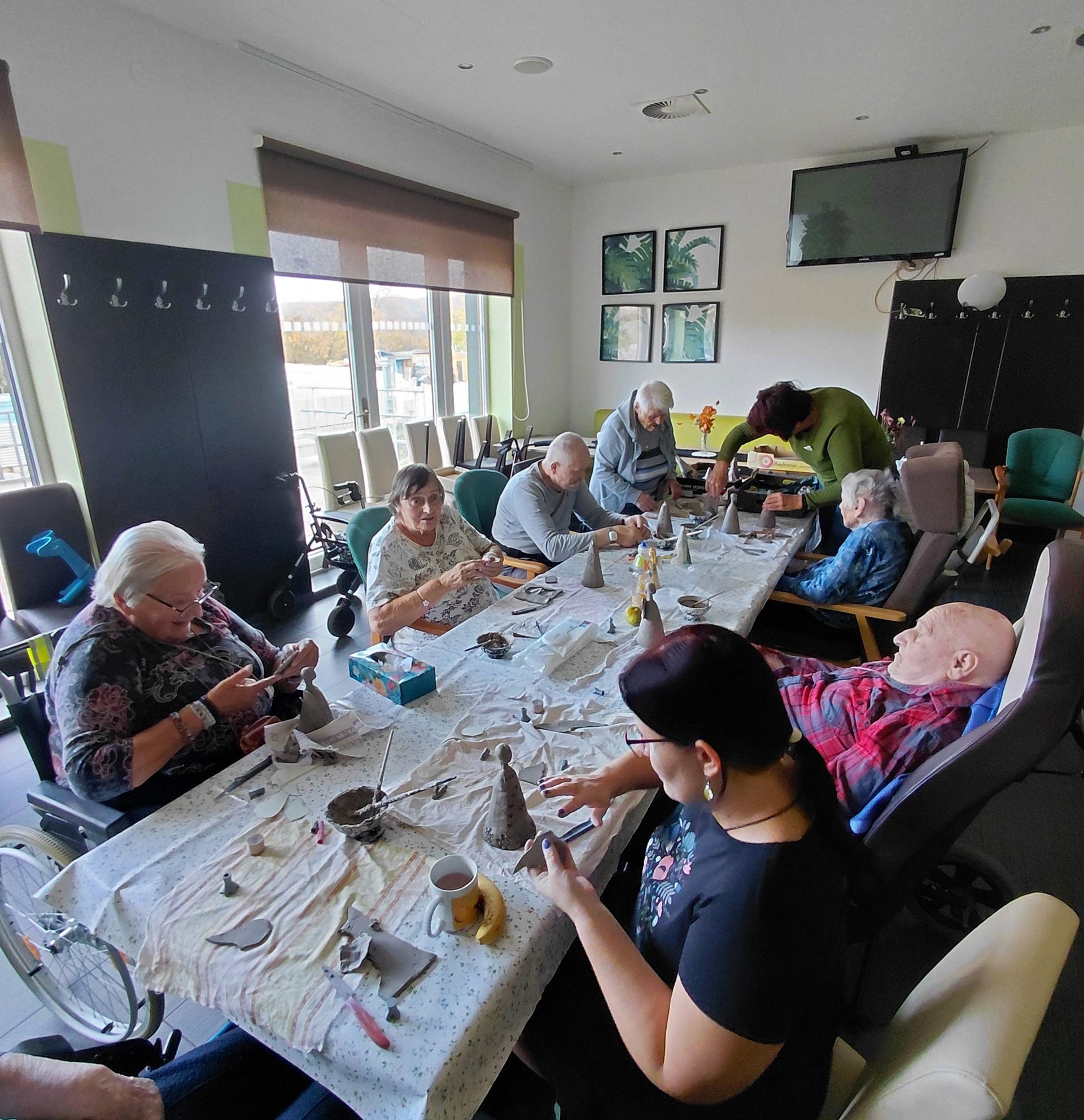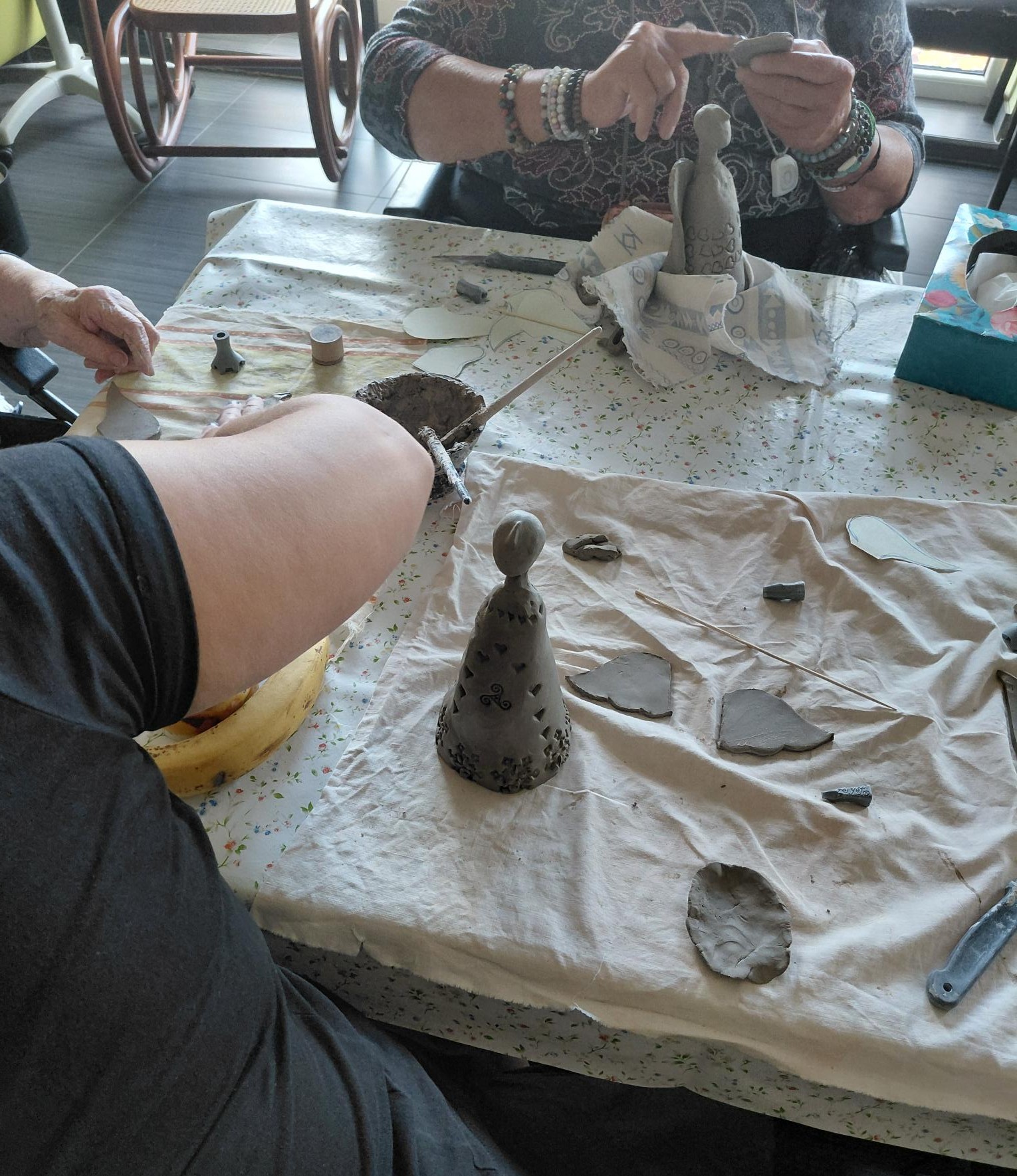 Klienti s velkým nadšením vyráběli keramické andílky, kteří budou zdobit prostory našeho Domova.