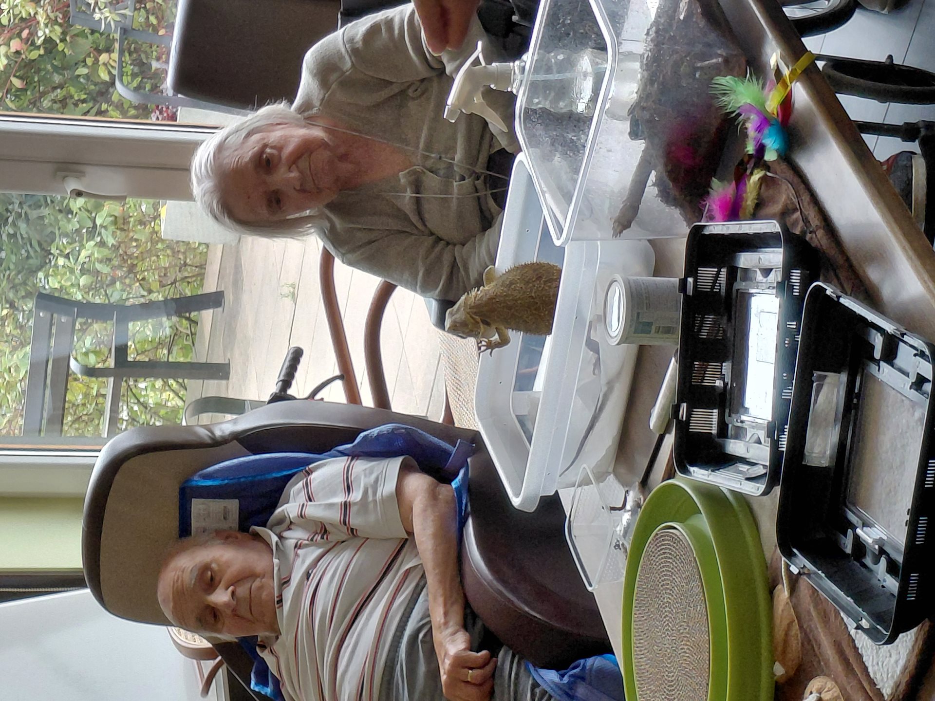 Naši senioři si mohou pohladit, nakrmit nebo se jen potěšit přítomností kočiček, leguánů a ostatních zvířátek.